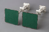 A pair of Edwardian silver table candlesticks in the style of George III. Square shaped bases with anthemion corners with a tapering fluted column and a single knop. Cotton reel capitals and conforming square sconces. Baize covered bases.