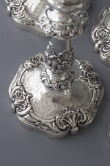 These are an extremely fine set of candlesticks of exceptionally good quality with only very minor signs of wear. All four stand true on the table top. The marks are clear and though one stick is marked for another maker, they all absolutely identical and were obviously produced from the same pattern.