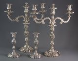 A Superb George IV Silver 3-Light Candelabra and Candlesticks Table Suite