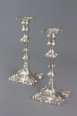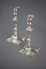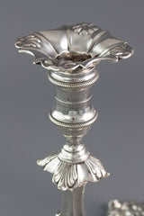 A Superb pair of George III Cast Silver Candlesticks by Ebenezer Coker, London 1764