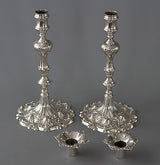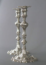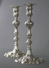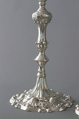 A Superb Pair of Georgian Cast Silver Candlesticks by Ebenezer Coker London 1763