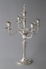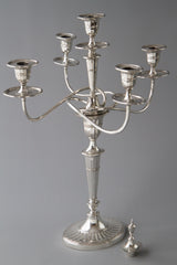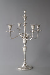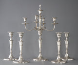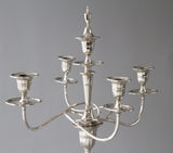 A superb Victorian Adam's style, silver candelabra/candlesticks table suite. Comprising of a 5-light candelabra and 4 candlesticks by Hawksworth & Eyre made in Sheffield between 1893 - 1899.