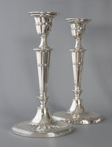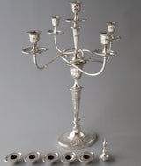 The 5-light candelabra is date marked for 1895, 1 pair of candlesticks is dated 1893 and the other pair is dated 1899.