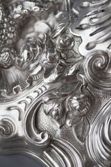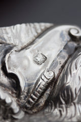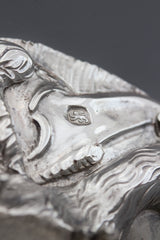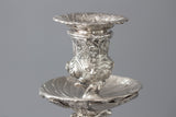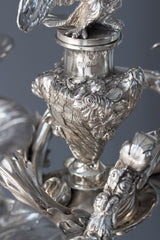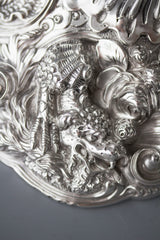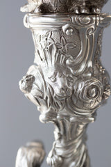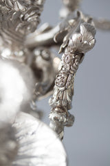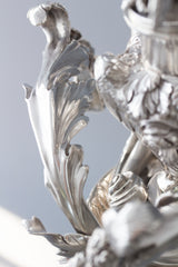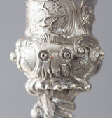 The four elements pattern came out of the Greek Revival movement during the latter part of the eighteenth century, and would have complemented the contemporary architecture. This neo-rococo design uses the Lion to represent earth, the Dolphin - water, the Dragon - fire and the Eagle - air. The pattern was originally designed by Storey & Elliott. William Pitts had a close working relationship with the pair, and used them to complete commissions during busy times, thus this pair are an important example of how silversmiths worked closely together to produce exceptionally fine pieces.