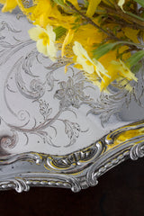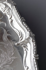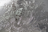 This is a magnificent large salver with no damage or repairs. The engraving is of the very finest. Stands true on the table. Very clear hallmarks. One of the best silversmiths here displaying consummate skill and artistry. Wonderful colour and patina.