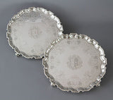 A Very Fine Pair of George II Silver Salvers London 1733 by Denis Langton