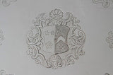 The central ground with an armorial surrounded by intricate chased arabesques. The whole standing on four scroll feet.