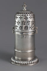 Casters of this period are extremely rare, especially the larger sugar caster. Most examples from this period are either in museums or private collections, and surviving examples of sets of three are very scarce indeed. We do have 2 very fine examples of smaller lighthouse casters which compliment this one exceedingly well, and we would be happy to discuss any serious offer for the three as a set - please see pictures.