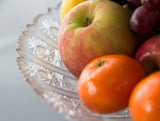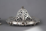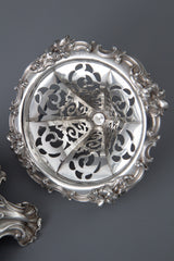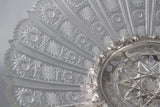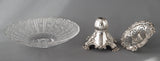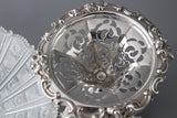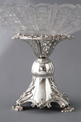 Very fine early Victorian silver pedestal table centrepiece, pierced and decorated with floral cast rim and three cast acanthus and shell form feet. Supporting a wide hobnail cut lead crystal bowl. The upper part of the silver stand can be unscrewed for easier cleaning.