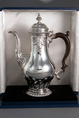 This coffee pot is in very fine condition, with good provenance. The gauge of the silver is very good and the lid fits extremely well. The handle is firm with no cracks, chips or splits and the finial sits true.