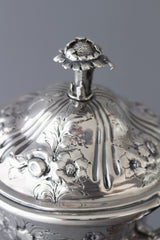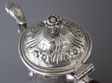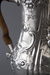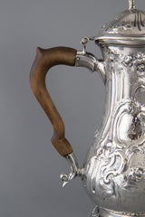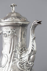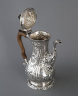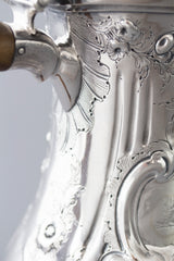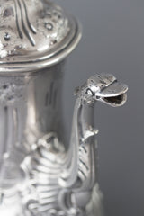 This is an exceptionally attractive coffee pot by two of the best makers of the period. Extremely unusual decoration and silversmithing of the very highest quality. The pot is in absolutely original condition with no signs of any damage or repair. The hinge is good, the lid fits well and the handle is firmly in its mounts. This is a highly unusual piece of extremely fine workmanship.
