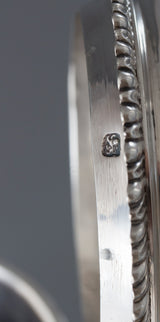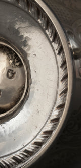 A very elegant and attractive silver coffee pot in first class original condition. No signs of damage or repair. The lid sits well, the handle is firm in its mounts with original silver pins. The pot stands true on the table. Lovely colour and patina.