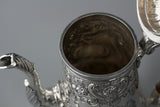 This coffee pot is in exceptional condition, with no repairs or erasures, and excellent definition to the raised decoration. The hallmarks are struck on top of the embossing, thus indicating that the decoration is contemporary to the piece. Overall the piece has a superb patina, very thick gauge and an overall luster only achieved through 250 years of care.