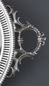 This is a large, robust and extremely attractive Victorian tray in absolutely original condition with no damage and no repair. Very good construction of robust gauge silver and superb workmanship . Very little wear to the central plate. The crest marginally more rubbed. The hallmarks absolutely clear. A stupendous piece of silver.