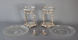 This really is an absolutely delightful pair of epergnes. Highly unusual and probably quite rare. There are absolutely no signs of any damage or repair and all the parts are of exceptionally high quality. The cut glass dishes are in perfect order with no chips, no cracks, and no damage at all. One dish is of a slightly darker coloured glass.
