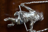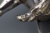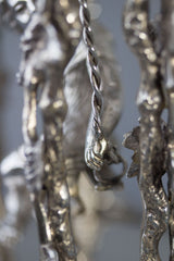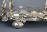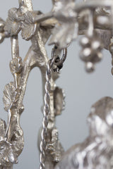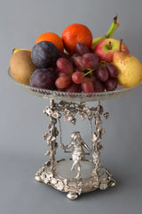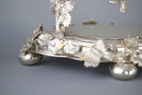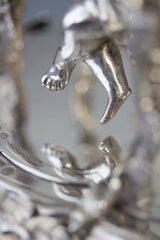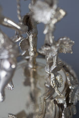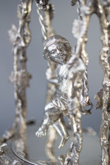 All the parts are made of solid cast silver. The girls are marked with a makers mark and the three sections of twining branches at the base separately marked with the makers mark and the date letter. These can be removed for easier cleaning via three nuts to the underside .The base is marked in two places. One for the base with its bun feet and the other mark for the mirror plateau and it's cast silver arbour.