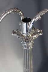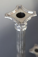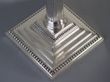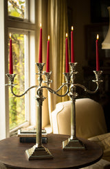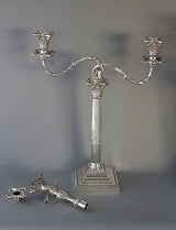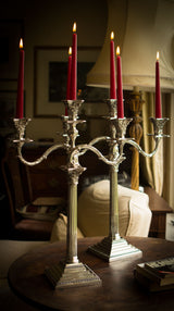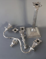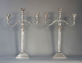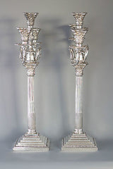 These are really an exceptionally fine pair of candelabra, tall and very impressive they make a superb table decoration. There are in absolutely excellent original condition with very, very little wear to any parts. There is some residual tarnish to the beaded decoration to the bases of the candlesticks and to some of the capitals. There is a possible strengthening or old repair to one of the arms but this is barely noticeable. All the pieces fit together beautifully and generally the entire component parts are in superb condition. The bases of the candlesticks are weighted with their original filling.