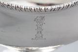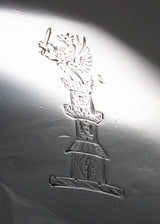A very good pair of large size late 18th century silver sauce boats of typical form. With leaf capped scroll handles and gadrooned rims. Standing on a shaped pedestal foot with gadrooned edge. Both pieces are crested to one side with a dragon wielding a sword emerging from a tower.