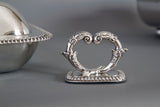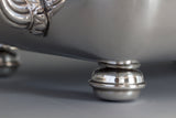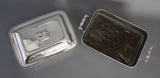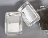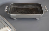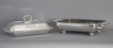 This also comes with a contemporary old Sheffield plate warming dish with scroll handles and four bun feet that can be unscrewed. Boiling water is poured into the base and the entree dish placed inside so the food is kept hot on the table. The plate is in very good order with only minor wear to the handles.