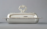 These entree dishes are in exceptionally fine condition with barely any wear to any of the parts. The robust gauge of silver and exquisite workmanship make these one of the most attractive pairs of entree dishes. The hallmarks are clearly legible with only minor rubbing. Each dish is crested to the lid with a man holding a rake above a shield in which there is a tree or flower.