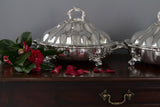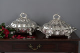 An Outstanding Pair of Silver Vegetable Tureens or Entree Dishes with Silver-Plated Warming Stands, by Joseph Angell & Son, London 1845