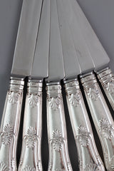 All the pieces are in extremely good original condition. The fork tines are sharp and even, the spoons with little wear. The silver handled knives in very good condition, the hallmarks are clear and the blades are very good. Minor expected wear throughout but no damage or repairs to any of the pieces.